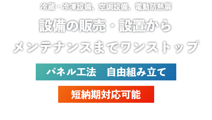 プレハブ冷蔵庫・冷凍庫から、空調設備、防熱扉まで